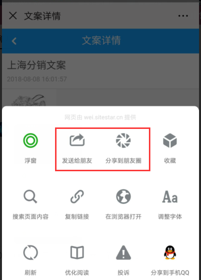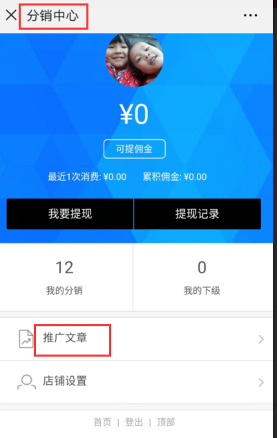 3.微信商进入会员-》分销中心-》点击推广文章进行推广(一般分享到朋友圈或转发给好友)