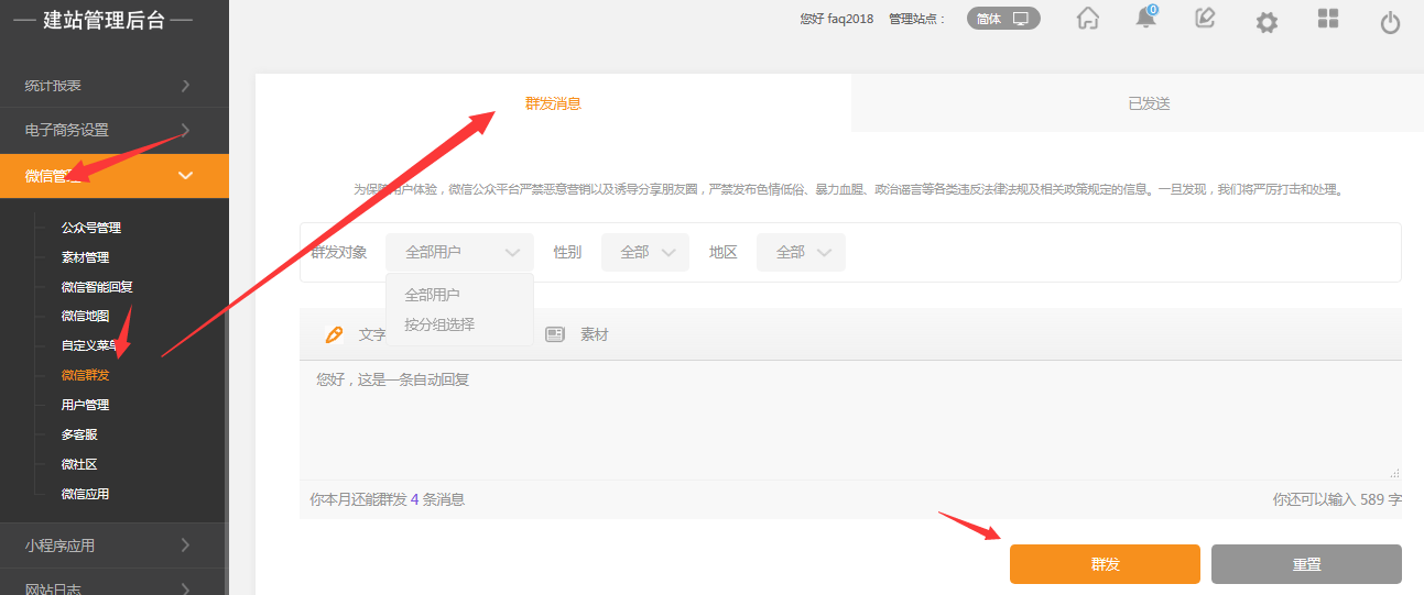然后再回到群发管理中群发消息